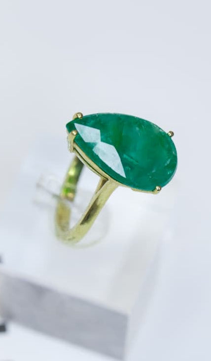 Anel ouro 18k e esmeralda lapidação gota 7,59 CT - 1 P/ 11,13X18,24X6,89MM